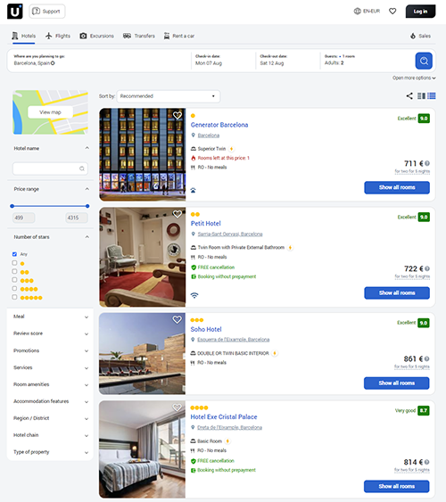 With a personal account, your client will be able to manage his bookings, add the necessary services, as well as receive your offers and calculated itineraries